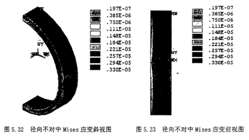 從Mises應(yīng)力云圖中可以看出,最大應(yīng)力出現(xiàn)在900位置。在外橡膠圓環(huán)外圈的應(yīng)力比內(nèi)圈的應(yīng)力要大。