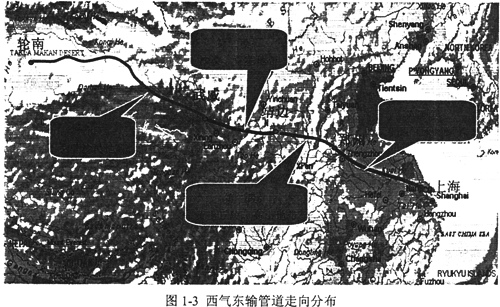 西氣東輸工程是我國在新世紀啟動的最大的建設(shè)工程之一,是西部大開發(fā)的標志性工程。工程西起新疆塔里木盆地的輪南氣田,經(jīng)甘肅、寧夏,進入陜西,在靖邊與長慶氣田連接,經(jīng)山西、河南、安徽、江蘇、浙江,東抵上海。