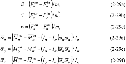 然后將被約束的分量置零,求解。求解后的平動(dòng)速度和轉(zhuǎn)動(dòng)速度可分別通過(guò)(2-36)和(2-37)的逆變換轉(zhuǎn)化成總體坐標(biāo)中的分量。因?yàn)樾碌慕俏灰屏繌姆匠?2-31)和關(guān)于b1的方程直接解得,邊界條件通常反映在更新的位移和節(jié)點(diǎn)向量b1中。