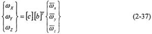 將上面的轉(zhuǎn)換矩陣定義為[c],則邊界條件中的平動(dòng)速度可按(2-36)式轉(zhuǎn)化為局部坐標(biāo)中的分量,轉(zhuǎn)動(dòng)角速度按下式定義: