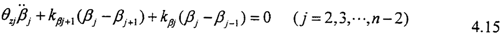 當忽略軸承對轉子扭轉振動的阻尼影響時,則第j個質點的扭矩自由振動方程為: