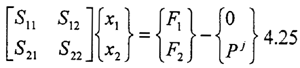 在方程(4.25)中{F1},{F2}為對應(yīng)于{x1},{x2}的廣義力向量,其中也包括了齒輪聯(lián)軸器內(nèi)外齒所受到的力和力矩。{Pj}則僅由徑向軸承提供的油膜反力組成。當(dāng){F1},{F2}和{x2}已知時,可解得{x1},{Pj}。