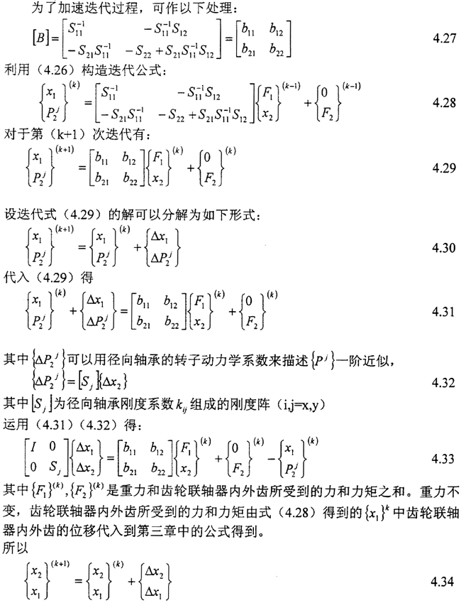 方程(4.1a),(4.1b)仍然可以被用來求解軸系的負荷分配,只不過齒時應(yīng)表在成如下形式: