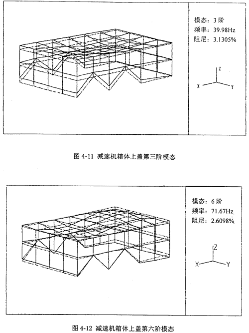 3 減速機(jī)箱體模態(tài)分析的結(jié)果可為今后故障診斷區(qū)別剔除信號(hào)中可能出現(xiàn)的減速機(jī)箱體固有振動(dòng)的成分。