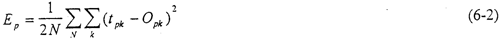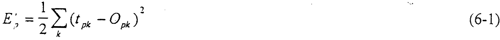 前饋網(wǎng)絡的訓練學習是一種監(jiān)督學習,而監(jiān)督學習的范例要求每一個輸入模式矢量與表示所期望的輸出模式矢量必須配對。一般說來,網(wǎng)絡輸出值{OPK}與期望的輸出值{tPK}是不相等的。對每一個輸入模式的模式樣本,其平方誤差