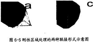剛性區(qū)域的處理是基于小變形理論,通過(guò)這種處理,單個(gè)構(gòu)件的自由模態(tài)頻率會(huì)上升,只有通過(guò)這種處理可以在ADAMS中進(jìn)行模態(tài)疊加和模態(tài)綜合,得出系統(tǒng)的固有頻率。其處理的方法是根據(jù)構(gòu)件間的不同的運(yùn)動(dòng)副連接形式,用點(diǎn)質(zhì)量單元上的節(jié)點(diǎn)(有時(shí)物體上自己的節(jié)點(diǎn)也可,不一定非要再建立質(zhì)量單元)和實(shí)體上相應(yīng)的節(jié)點(diǎn)進(jìn)行耦合,形成主節(jié)點(diǎn)和從節(jié)點(diǎn)關(guān)系,構(gòu)成剛性區(qū)域。其連接形式如圖6-5,在此圖的連接形式中,a圖的連接形式可以傳遞所有載荷形式,是一種推薦的連接方式;c圖中主節(jié)點(diǎn)僅同單個(gè)從節(jié)點(diǎn)相連傳遞的載荷形式有限,不合適選用。