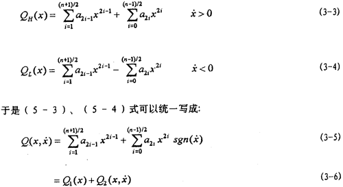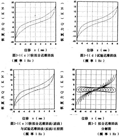 2,將擬合得到的各冪函數(shù)多項式奇、偶次項分開寫成(3-5)式形式并作對應(yīng)的曲線圖,如圖3-2(見34頁)所示,這樣就將恢復(fù)力分解成了單值非線性函數(shù)曲線和雙值的非線性函數(shù)閉合曲線,由此得到了對應(yīng)的
