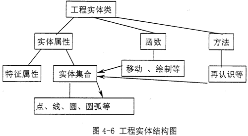 單個實(shí)體是通過點(diǎn)、直線、圓、圓弧等信息的集成而體現(xiàn)的,因此,在對實(shí)體類進(jìn)行定義時(shí),可充分利用AutoCAD中的“實(shí)體集合”這個設(shè)計(jì)概念,把*.dwg圖形數(shù)據(jù)庫中的若干幾何信息集成起來,使之成為一個整體,再將此“實(shí)體集合”并入實(shí)體類的一個屬性(見圖4-6),當(dāng)實(shí)體在繪制、移動等操作中被調(diào)用。