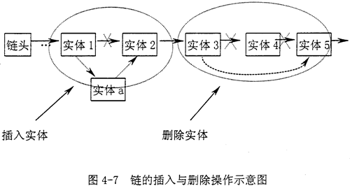 用戶對實(shí)體進(jìn)行查找、移動、旋轉(zhuǎn)、刪除等操作,系統(tǒng)首先要在整個圖紙中搜索該實(shí)體,因而,系統(tǒng)必須對整個圖紙的實(shí)體的綜合信息進(jìn)行存儲,多采用鏈?zhǔn)浇Y(jié)構(gòu),設(shè)置一個鏈頭和一個指向當(dāng)前實(shí)體的指針。采用鏈?zhǔn)浇Y(jié)構(gòu)的原因是它很方便進(jìn)行查找、插入、刪除,效率高,簡單明了。(見圖4-7)