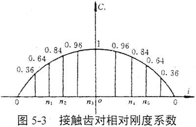 式中i為接觸齒對號,其各接觸齒對所對應的相對剛度系數(shù)如圖5-3所示。