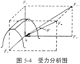 φ2b——第i對齒基圓上的點與靜參考系間所夾的圓心角。其接觸線上任意點k處的受力狀態(tài)如圖5-4所示。