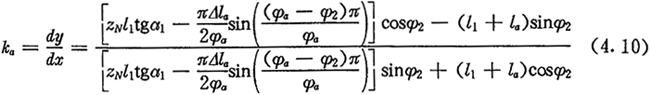 第二,在φ2=φa處,兩曲線有相同的切線。設(shè)齒頂段修形曲線的切線斜率為ka,則由式(4.8)可得: