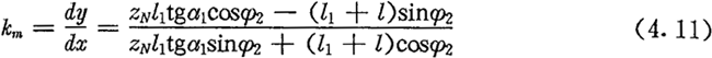 中段修形曲線的切線斜率km可由(4.6)式求得: