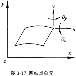 由上述分析可知:均載環(huán)離散成八個(gè)對(duì)稱(chēng)的環(huán)弧段,因此均載環(huán)總體剛度的計(jì)算歸結(jié)為求解其離散的環(huán)弧段的剛度。本章利用I-DEAS分析軟件計(jì)算內(nèi)、外表面各均勻分布八個(gè)凸臺(tái)的輸入、輸出軸彈性均載環(huán)的離散環(huán)弧段的剛度,從而得到均載環(huán)的總體剛度。對(duì)于圖3-15所示的離散環(huán)弧段,內(nèi)凸臺(tái)的受力沿+x方向,并且在沿軸向方向上均勻分布,所以只需考慮xy平面內(nèi)的形變分量和位移分量即可,可以認(rèn)為是平面應(yīng)力問(wèn)題。在單元選擇上,選用“平面應(yīng)力問(wèn)題”中的四結(jié)點(diǎn)單元,定義單元的四結(jié)點(diǎn)厚度與彈性均載環(huán)的寬度相一致。四結(jié)點(diǎn)單元如圖3-17所示。