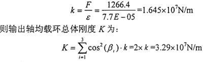 由上述的輸出軸均載環(huán)的實(shí)際結(jié)構(gòu)參數(shù),可以求出輸出軸均載環(huán)環(huán)弧段的剛度為:
