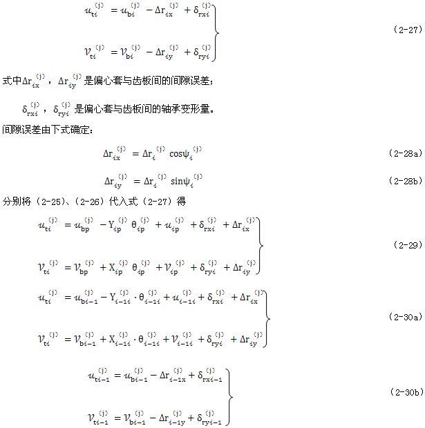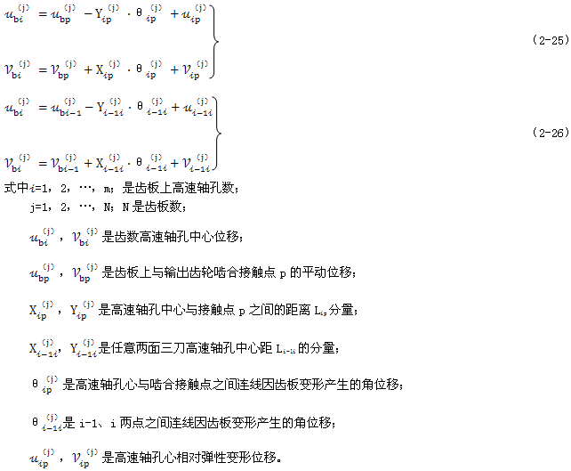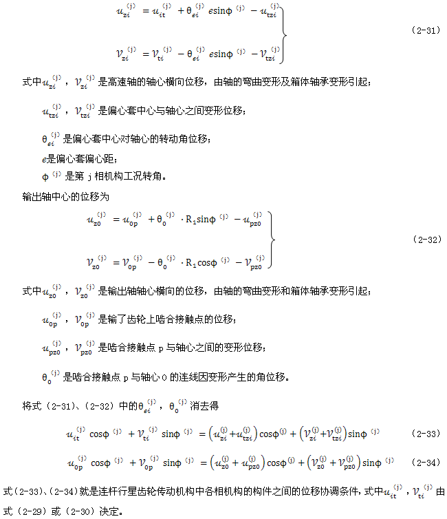 式(2-40)就是少齒差連桿行星齒輪傳動(dòng)初喲多齒接觸承載的位移協(xié)調(diào)條件。用于多相并列少齒差連桿行星齒輪傳動(dòng)機(jī)構(gòu)時(shí),由此消去C(j)后可列出Σni=1(Z(j)-1)個(gè)補(bǔ)充方程。