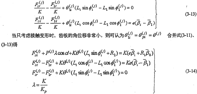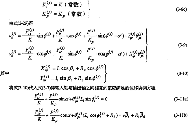 (3-11)及式(3-14)就是少齒差內(nèi)齒行星傳動(dòng)機(jī)的動(dòng)力分析補(bǔ)充方程。