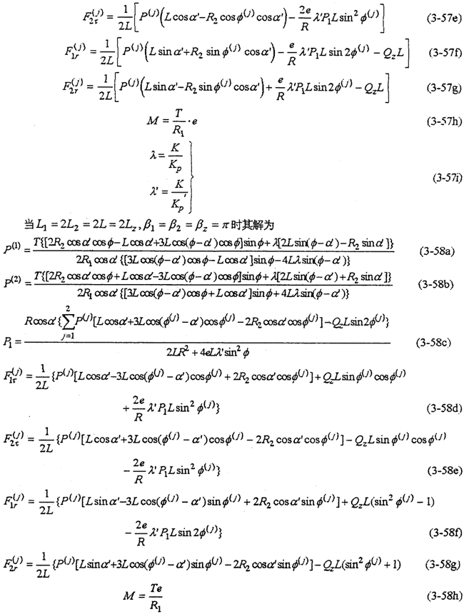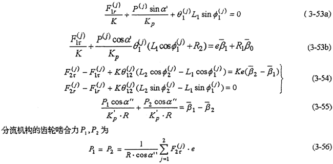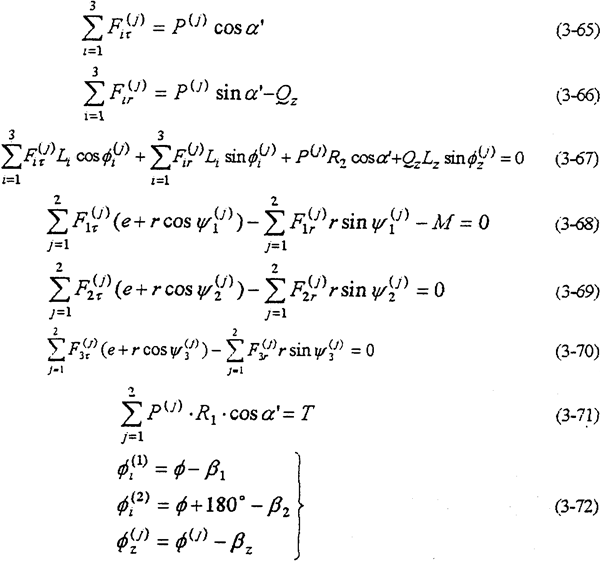 由式(3-78)~(3-85)就能完全確定整個(gè)機(jī)構(gòu)的動載荷。當(dāng)N=2時(shí)為二齒環(huán)傳動,N=3時(shí)為三齒環(huán)傳動,N=4時(shí)為四齒環(huán)傳動。因此式(3-78)~(3-85)實(shí)際上是多軸式以外的各各類型的內(nèi)齒行星傳動機(jī)構(gòu)的動力分析方程。