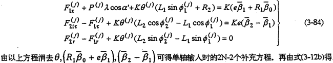 式(3-86)、(3-87)就是考慮間隙誤差的動力分析補(bǔ)充方程。