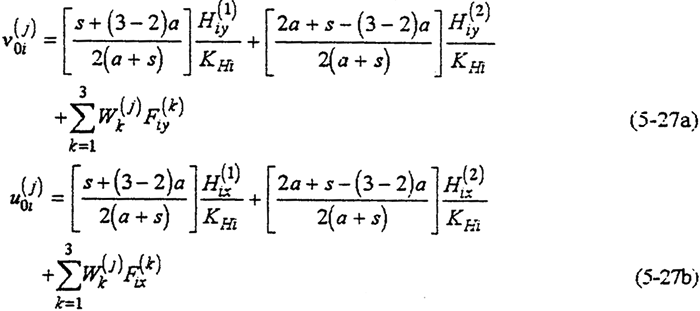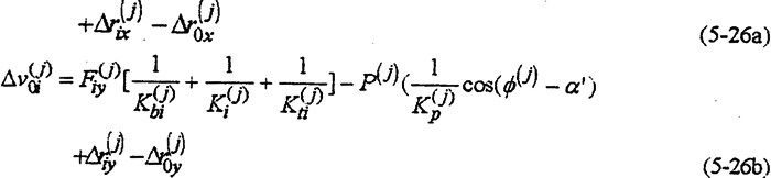 式(5-27)及式(5-28)中s是兩則齒板靠近箱體的距離,a是齒板之間的距離。取箱體軸承的剛度KH0=KHi=1379×105N/mm。偏心套的徑向變形△e(j)i以及外齒輪的徑向變形△R(j)1均很微小,故一般忽略不計。