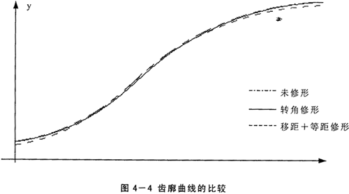 以上三種齒廓修形法中,轉(zhuǎn)角修形法不僅機構(gòu)調(diào)整麻煩,而且不能單獨使用,然而采用適當(dāng)?shù)囊凭嘈扌瘟亢偷染嘈扌瘟肯嘟M合的方法可使磨削出的齒廓與用轉(zhuǎn)角修形法得到的齒廓相接近,因此在傳動中可使多對齒同時嚙合,并且在齒頂和齒根處均有間隙存在,采用這樣的修形方法磨削擺線輪比轉(zhuǎn)角修形法方便得多。