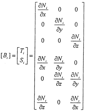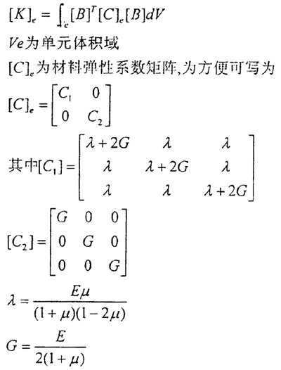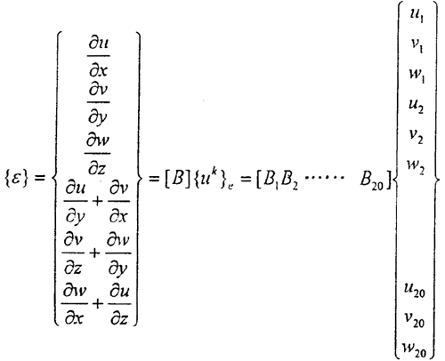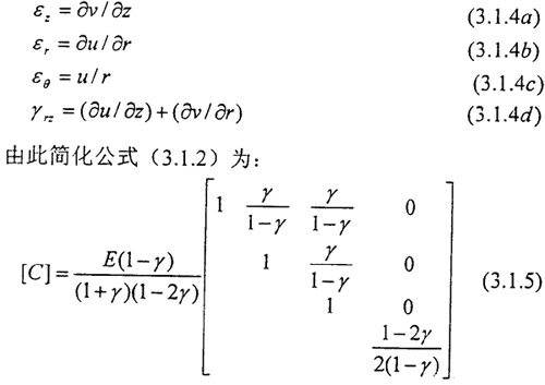 維變形狀態(tài)下,根據(jù)幾何關系、應變列陣為: