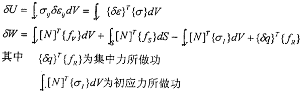 [△]為(3.1.3)中微分算子組成的矩陣,[B]為應變、位移關系矩陣,由總位能原理得: