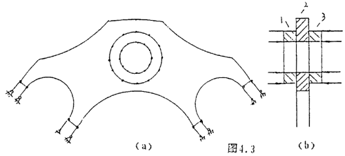 為了分析方便,我們依然取疊片的2/n來(lái)分析,當(dāng)聯(lián)軸器傳遞扭矩時(shí),疊片受到主、從動(dòng)法蘭盤(pán)上的聯(lián)接螺栓的作用,其作用的載荷是反對(duì)稱載荷。