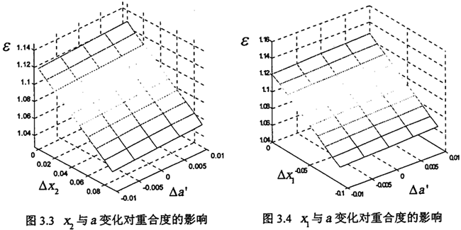 從圖3.3、3.4明顯看出中心距變化對重合度的影響程度明顯小于變位系數(shù)變化對重合度的影響程度。