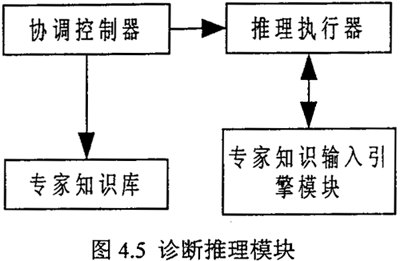 推理模塊是一個隱藏于后臺的推理計算模塊,它的結(jié)構(gòu)如圖4.5,協(xié)調(diào)控制器用來管理各推理機的工作并協(xié)調(diào)推理執(zhí)行器與專家知識輸入引擎模塊可知,對一示同的故障,其“數(shù)據(jù)層”、“故障現(xiàn)象層”、“故障原因?qū)印奔捌渌鼈冎g的連線關(guān)系絕不相同,協(xié)調(diào)控制器就是將“數(shù)據(jù)層”、“故障現(xiàn)象層”、“故障原因?qū)印奔捌渌鼈冎g的連線關(guān)系自動轉(zhuǎn)化為推理進程關(guān)系,由推理執(zhí)行器完成推理診斷工作。