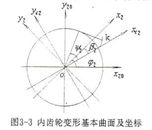 設(shè)內(nèi)齒輪變形基本曲面為漸開線曲面,其端面上的齒面線及坐標如圖3-3所示。