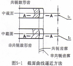 數(shù)學(xué)方法上,兩曲面的逼近是“極大極小問題”,雖已有這方面的理論探討,但還沒有成熟的計算軟件。本文采用截面曲線逼近的方法(如圖5-1所示),將軸向坐標離散,求得各截面上曲線逼近的δ值,再根據(jù)δ值的軸向分布形態(tài),確定擬合的函數(shù)形式,以最小二乘法擬合出鼓度曲線。