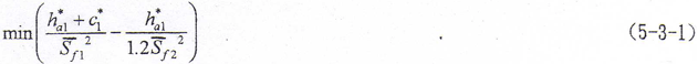 由目標函數(shù)(5-3-1)式及約束條件(5-3-2)式便構(gòu)成本問題的優(yōu)化數(shù)學(xué)模型。通過對優(yōu)化數(shù)學(xué)模型的求解,可以計算出不同齒模數(shù)及相應(yīng)的鼓度半徑下的優(yōu)化齒頂高系數(shù)值。表5-2給出了幾種不同輸入?yún)?shù)下的求解值,從表中數(shù)據(jù)可以看出,不同齒數(shù)及鼓度半徑,其優(yōu)化齒頂高系數(shù)不同,但都不超過0.7?紤]到齒頂高系數(shù)的統(tǒng)一,建議采用齒頂高系數(shù)為0.7是適宜的。值得指出的是,這種齒頂高系數(shù)的齒輪是采用標準齒頂高系數(shù)滾刀和插齒刀用特殊方法進行加工的。