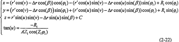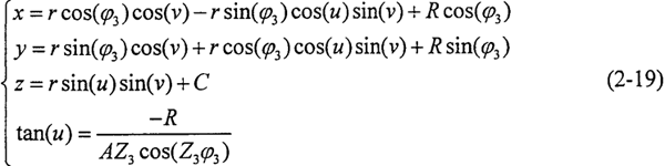 右齒面齒廓方程同左齒面方程,其中接觸角β取負(fù)值。