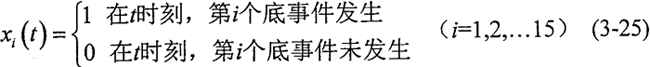 根據(jù)式(3-25)和式(3-26),可知在第j次抽樣中第i個底事件在t時刻的狀態(tài)變量為
