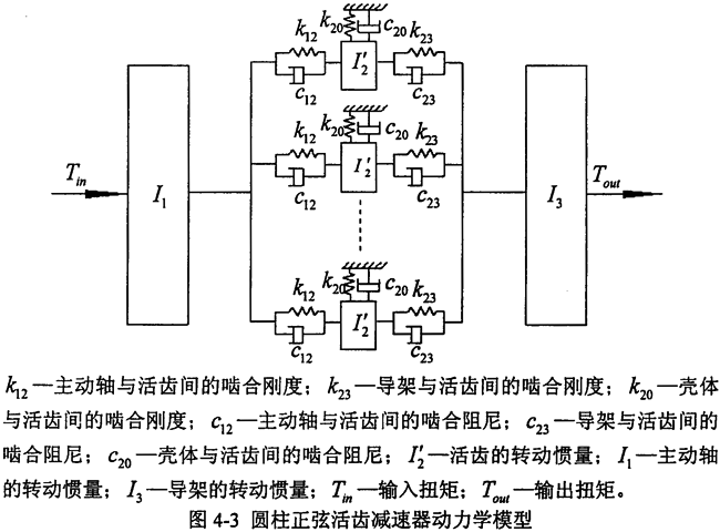 機(jī)械傳動(dòng)系統(tǒng)把運(yùn)動(dòng)和動(dòng)力由動(dòng)力源傳遞給機(jī)器執(zhí)行件的工作過程中,經(jīng)常會(huì)受到激振力和激振力矩的作用,從而使傳動(dòng)系統(tǒng)的零部件產(chǎn)生扭轉(zhuǎn)振動(dòng),振動(dòng)將直接影響到機(jī)械系統(tǒng)的精度、效率、壽命、安全性和可靠性,由此而產(chǎn)生的噪音也對環(huán)境產(chǎn)生干擾和危害。因此在設(shè)計(jì)機(jī)械傳動(dòng)系統(tǒng)時(shí),必須考慮將振動(dòng)的量級(jí)控制在一定范圍內(nèi),以保證系統(tǒng)具有良好的動(dòng)態(tài)特性。為設(shè)計(jì)高性能的圓柱正弦活齒減速器,了解該傳動(dòng)系統(tǒng)的動(dòng)態(tài)特性,有必要對其進(jìn)行扭振動(dòng)力學(xué)分析,以便評價(jià)其振動(dòng)水平,并找出影響動(dòng)態(tài)特性的薄弱環(huán)節(jié),從而為進(jìn)一步動(dòng)態(tài)結(jié)構(gòu)優(yōu)化設(shè)計(jì)、提高減速器的動(dòng)態(tài)性能提供了理論依據(jù)。評價(jià)傳動(dòng)裝置的動(dòng)態(tài)性能通常有試驗(yàn)法和計(jì)算法兩種方法。一般情況下,試驗(yàn)法可獲得較準(zhǔn)確的結(jié)果,但只適用于評價(jià)給定的實(shí)物或模型。而計(jì)算法通過建立動(dòng)力學(xué)模型,在設(shè)計(jì)階段就可獲得評價(jià)系統(tǒng)動(dòng)態(tài)性能所需的各種數(shù)據(jù)資料,并可根據(jù)分析結(jié)果來進(jìn)行優(yōu)化設(shè)計(jì),從而在設(shè)計(jì)階段就能得到一個(gè)具有良好動(dòng)態(tài)特性的系統(tǒng)設(shè)計(jì)方案,因此計(jì)算方法比試驗(yàn)法更經(jīng)濟(jì)實(shí)用,但數(shù)學(xué)模型的建立具有一定的難度。