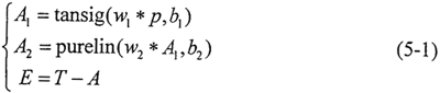 (2)計算網(wǎng)絡(luò)各層輸出矢量A1、A2,以及網(wǎng)絡(luò)誤差E