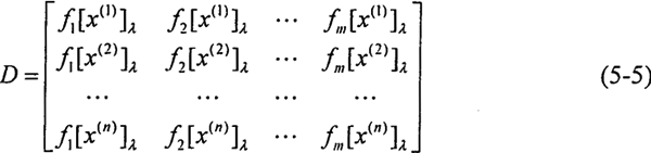 1.求樣本矩陣 設(shè)F1(x(1))λ,F(xiàn)2(x(2))λ,…,F(xiàn)n(x(n))λ,為求得n組滿意解,即