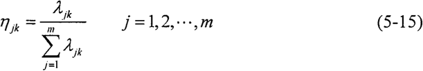 則第j個指標(biāo)屬于第k個灰類的標(biāo)致定聚類權(quán)ηjk為