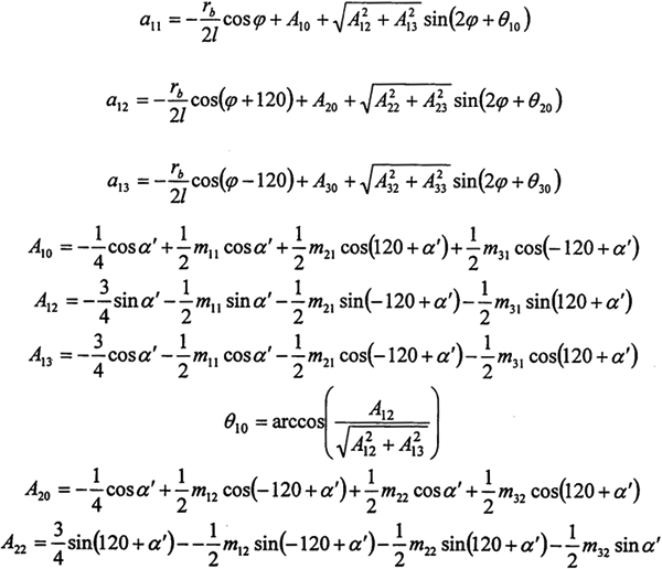 由上式可看出,任意時(shí)刻各環(huán)板上作用的嚙合力是不相等的,且是與轉(zhuǎn)角、環(huán)板和曲柄軸結(jié)構(gòu)尺寸、壓力角以及偏心尺寸有關(guān)的復(fù)雜函數(shù),假設(shè)各嚙合力相等或者是成一簡(jiǎn)單的函數(shù)關(guān)系都是與實(shí)際嚴(yán)格不符的。若需要用簡(jiǎn)潔的函數(shù)關(guān)系加以描述,應(yīng)首先利用上式求出輸出軸旋轉(zhuǎn)一周時(shí)的數(shù)個(gè)嚙合力的表達(dá)式,這里不作詳細(xì)的討論。