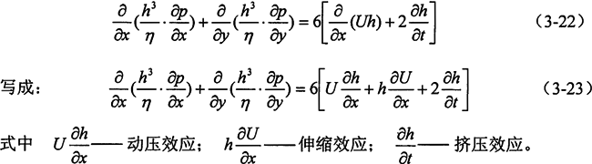 必須強(qiáng)調(diào)指出:上式的Reynolds方程是根據(jù)一系列假設(shè)推導(dǎo)出來的,適用于一般工況條件的潤(rùn)滑計(jì)算。在特殊的工況條件下,當(dāng)某些假設(shè)不能成立時(shí),必須針對(duì)具體情況推導(dǎo)相應(yīng)的Reynolds方程形式。