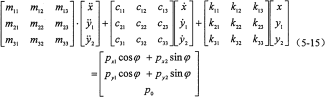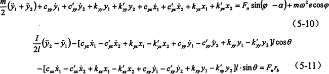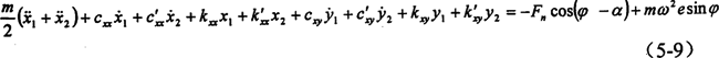 對(duì)于與x坐標(biāo)軸方向相垂直的y方向,也可仿上面過(guò)程進(jìn)行推導(dǎo),但由于其激振力不含2φ項(xiàng)其結(jié)果比x坐標(biāo)軸方向要簡(jiǎn)單一些。