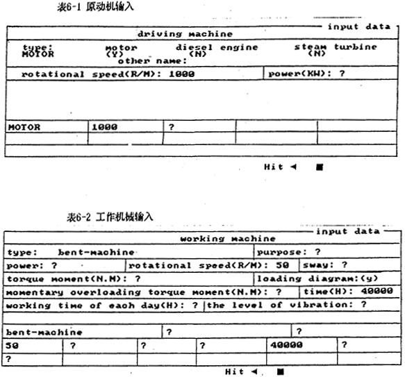 系統(tǒng)的輸入是專家系統(tǒng)的“開場(chǎng)條件”,人工設(shè)計(jì)的方法是由定貨單位向設(shè)計(jì)人員提供任務(wù)書(以口頭或書面形式),設(shè)計(jì)人員通過這些已知條件進(jìn)行設(shè)計(jì)工作。專家系統(tǒng)則要求設(shè)計(jì)人員(或由定貨人員)與計(jì)算機(jī)進(jìn)行“對(duì)話”,以便使專家系統(tǒng)了解原始的已知條件。事實(shí)上,由于受人工智能和計(jì)算機(jī)技術(shù)發(fā)展的限制,還不能同計(jì)算機(jī)形成視、聽對(duì)話,因而,圓柱齒輪減速器設(shè)計(jì)專家系統(tǒng)仍采用傳統(tǒng)CAD所采用的方法,即采用精確的輸入方式(或稱數(shù)據(jù)輸入方式而非語言物入方式)。