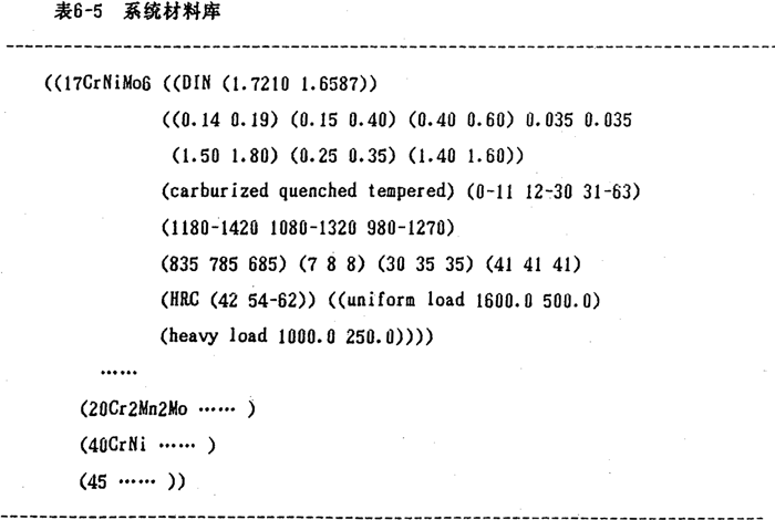 軸、箱體以及對(duì)大型組裝具輪采用的支撐部分的材料的選擇方法類同于齒輪材料,在此不詳細(xì)討論。若當(dāng)前材料數(shù)據(jù)庫無可供選擇的材料時(shí),系統(tǒng)便要求用戶輸入指定的材料特性,并按相應(yīng)的格式加入到材料數(shù)據(jù)庫,以便不斷地完善系統(tǒng)的材料庫。