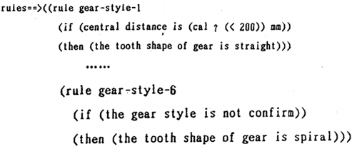 規(guī)則l的條件項(xiàng),初次使用時(shí),由于中心距尚未確定,不能觸發(fā)運(yùn)用。系統(tǒng)采用的方法是先用初次選用的齒形參與傳動(dòng)計(jì)算,待求出中心距時(shí)再次調(diào)用該規(guī)則集進(jìn)行推理。若于原來的假設(shè)發(fā)生沖突,撤銷原假設(shè)并以新事實(shí)重新進(jìn)行計(jì)算。