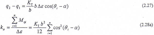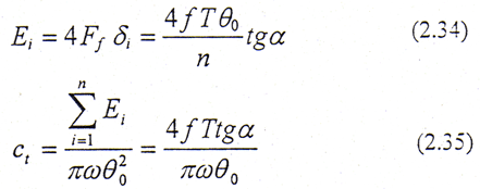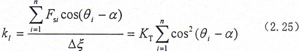 設在ξ方向給小位移△ξ,見圖2.6,則彈性位移為dsi=△ξ|cos(θi-α)|,產(chǎn)生的彈性力Fsi=KTdsi