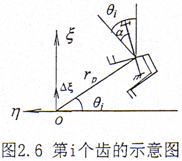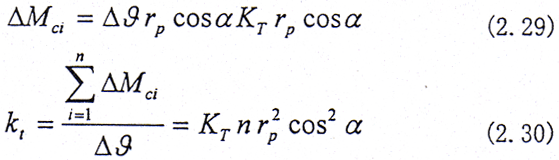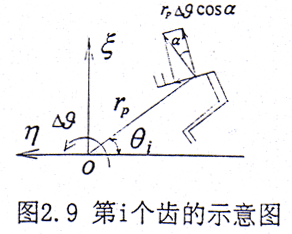 設繞z方向給一小扭轉(zhuǎn)角△θ,如圖2.9所示,則在第i對齒對上產(chǎn)生的扭矩為△Mci,設rp為節(jié)圓半徑。則有