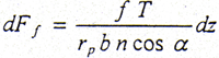 設內(nèi)、外齒輪軸線間有一相對轉(zhuǎn)角振幅ε0,如圖2.11所示,在齒z處dz上的摩擦力