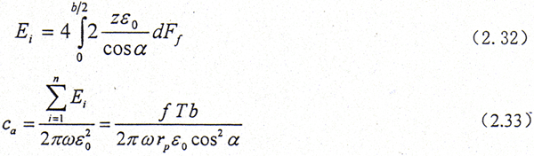 設內(nèi)、外齒輪軸線間有一相對橫向振幅δ0,如圖2.10所示,則第i對齒面相對滑動的位移為δi=δ0/cosα,齒面滑動摩擦力為Ff=fT/rpncosα,其中f為齒面間的滑動摩擦系數(shù),第i對齒對上的摩擦力消耗的能量為Ei=4Ffδi