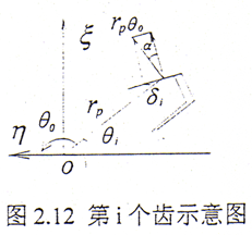 設內(nèi)、外齒輪有一相對扭轉(zhuǎn)振幅θ0,如圖2.12所示,則第i對齒面間相對滑動位移為δi=rpθ0sinα。第i對齒對上的摩擦力消耗的能量為